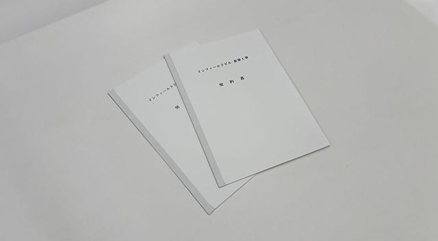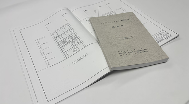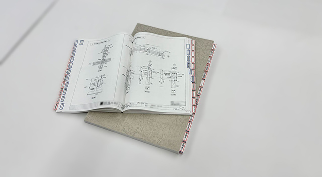 データ(PDF or CAD)を入稿していただくと、弊社が扱う上質紙に印刷して製本まで行います