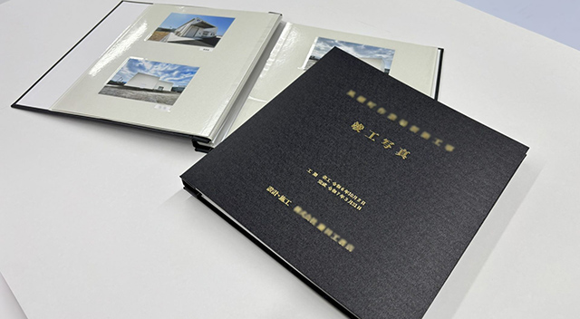 竣⼯写真アルバム ⿊表紙⾦⽂字製本