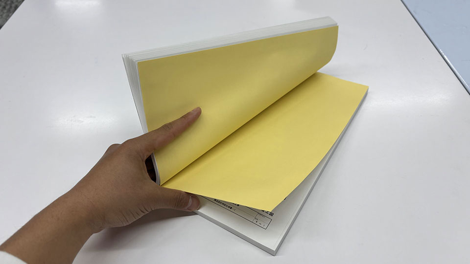 データ(PDF or CAD)を入稿していただくと、弊社が扱う上質紙に印刷して製本まで行います